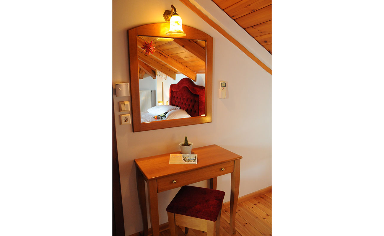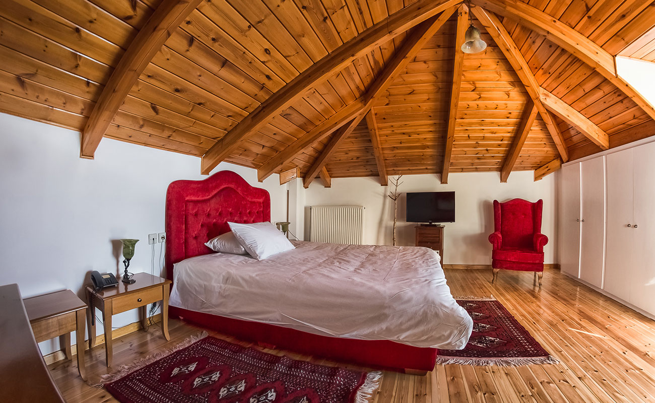 Άνετο και cozy δωματιο (20 τετραγωνικα) στο δευτερο οροφο του κτιριου. Μοναδικη θεα στην πολη και τη λιμνη των ιωαννινων. Διαθετει ξυλινο πατωμα και οροφη,king size κρεββατι, απαλο φωτισμο, παλ χρωματα. Φιλοξενει μεχρι 2 ατομα.